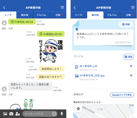 A現場情報のやりとりをトークアプリで行っていたので、写真やデータ、作業進捗などもその場限りでは何とかできていました。